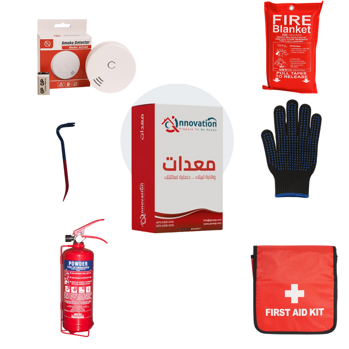 بوكس كرتوني يحتوي على أهم معدات الحريق والسلامة والأمان يصلح وضعه في المخزن في العزبة في المطبخ وحتى في سكن العمال يحتوي على التالي : - طفاية حريق ١ كج - بوكس أسعافات أولية - مطرقة لفتح الأبواب والأقفال - قفاز - بطانية الحريق